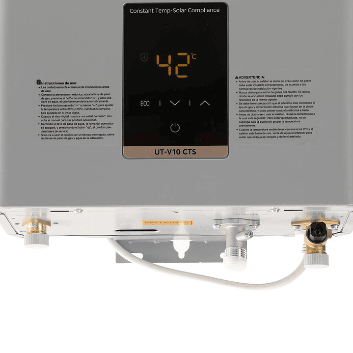 El calefón UT V10-CTS Ursus Trotter de 10 litros tiro forzado a gas licuado entrega agua caliente segura y eficiente. Su compatibilidad con energía solar lo convierte en una opción moderna y responsable, ideal para quienes priorizan el ahorro energético y la comodidad diaria.